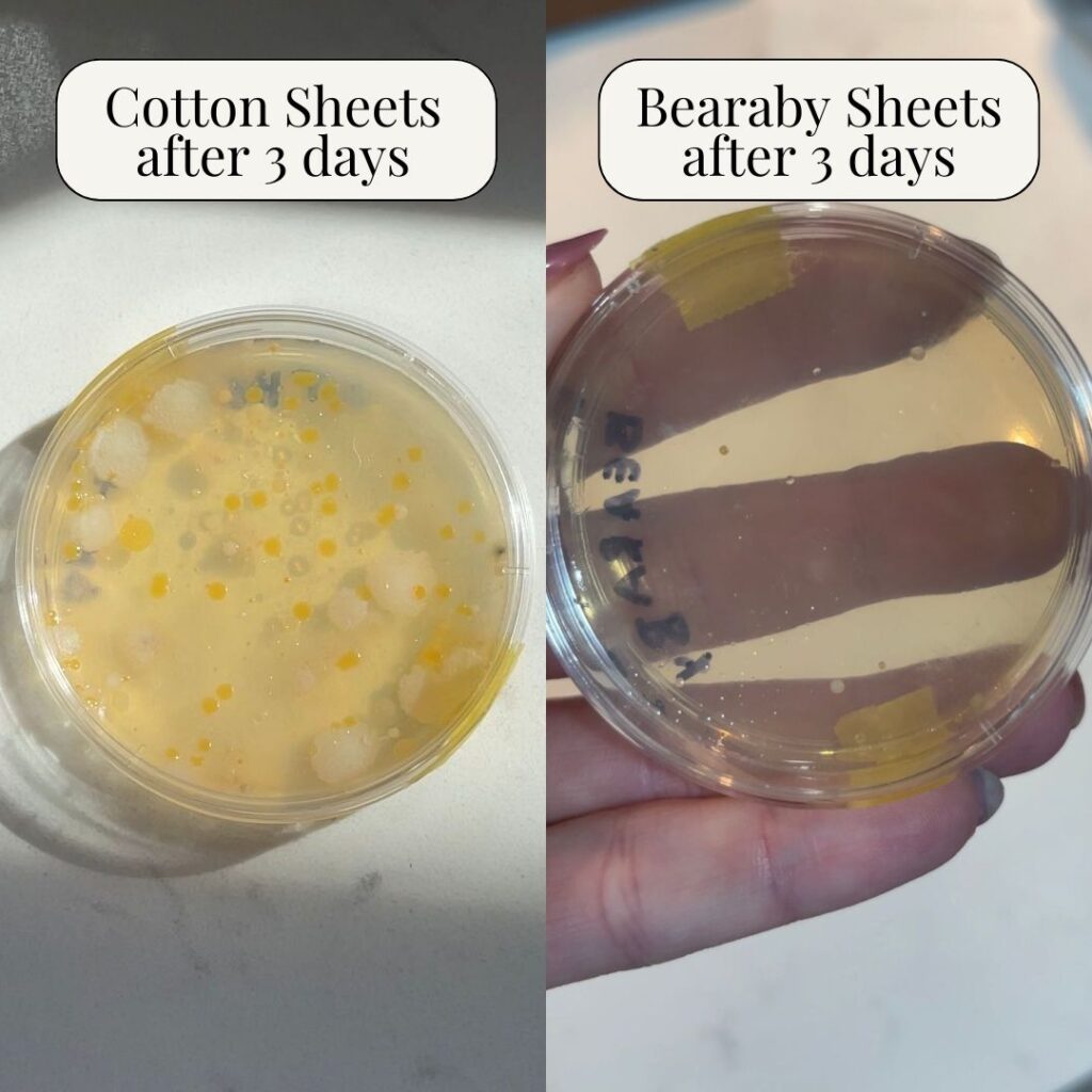 After my week-long experiment, I couldn’t unsee those petri dishes. The visual difference between my regular sheets and Bearaby’s was astounding.
